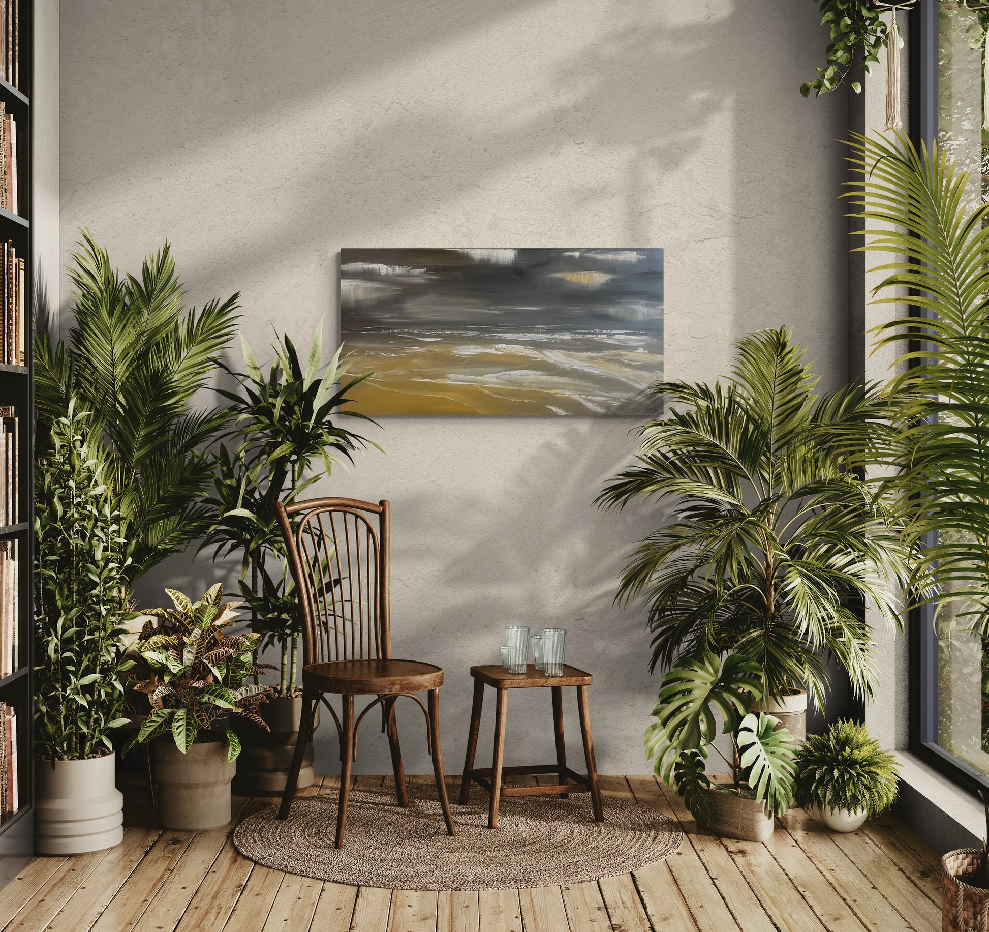 Acryclic on stretched canvas over timber frame. Ready to hang.