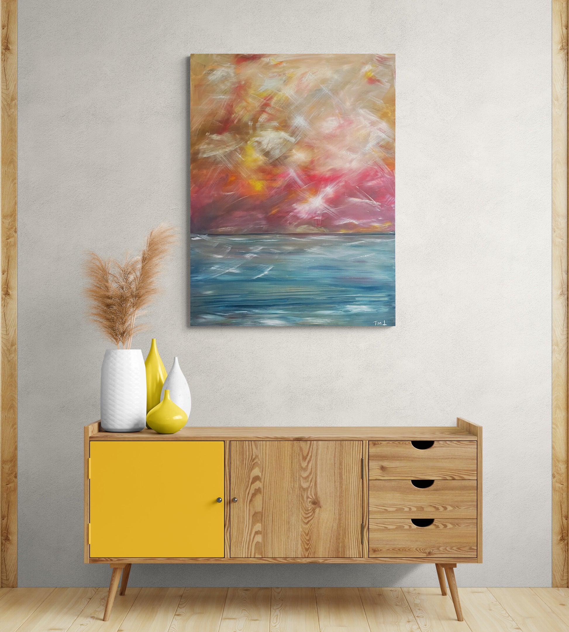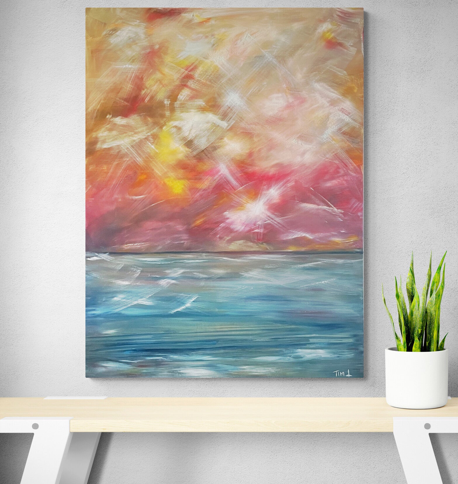 Acryclic on stretched canvas over timber frame. Ready to hang.