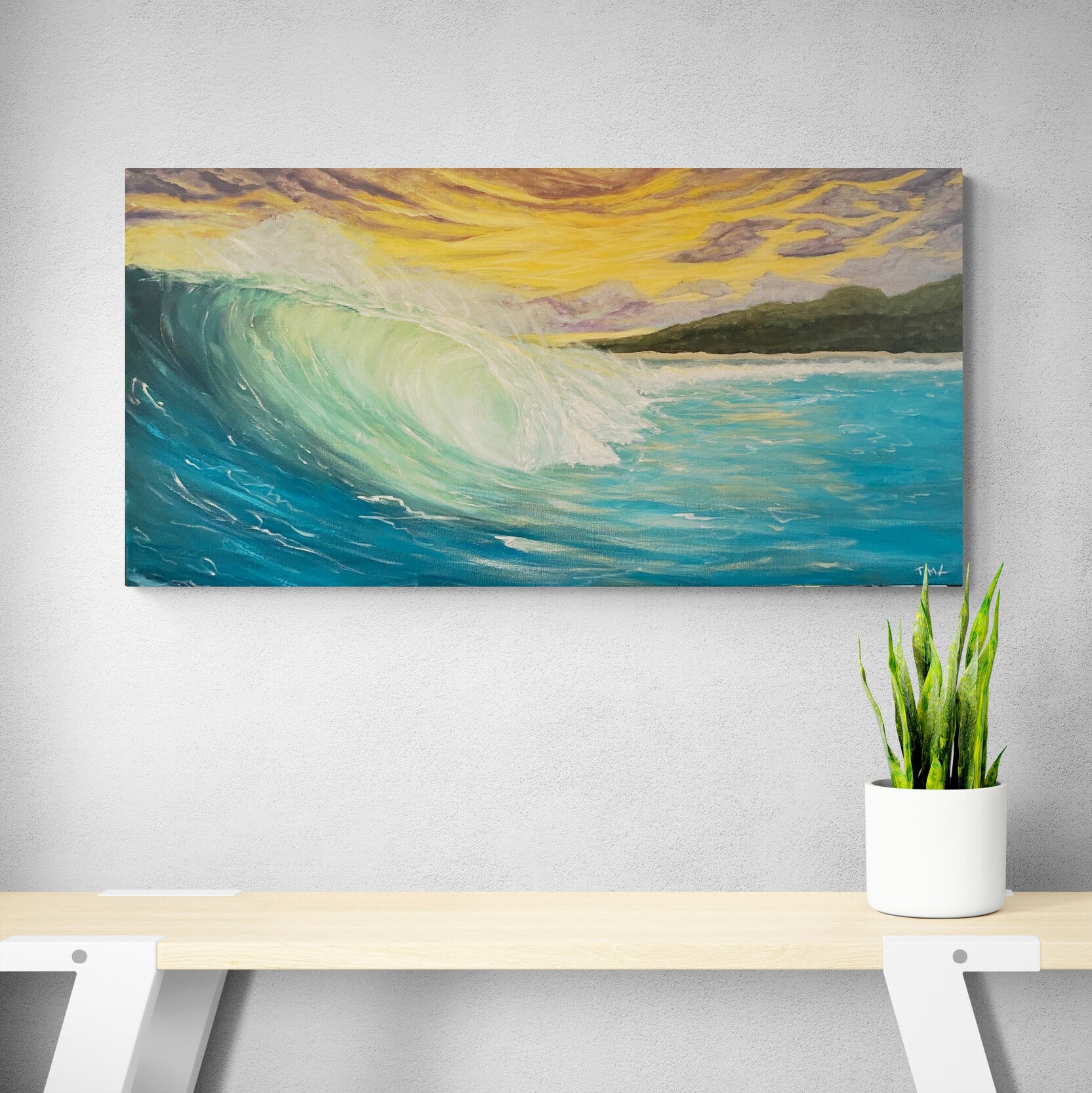Sunset Wave captures the last of daylight over a turquoise breaking wave.