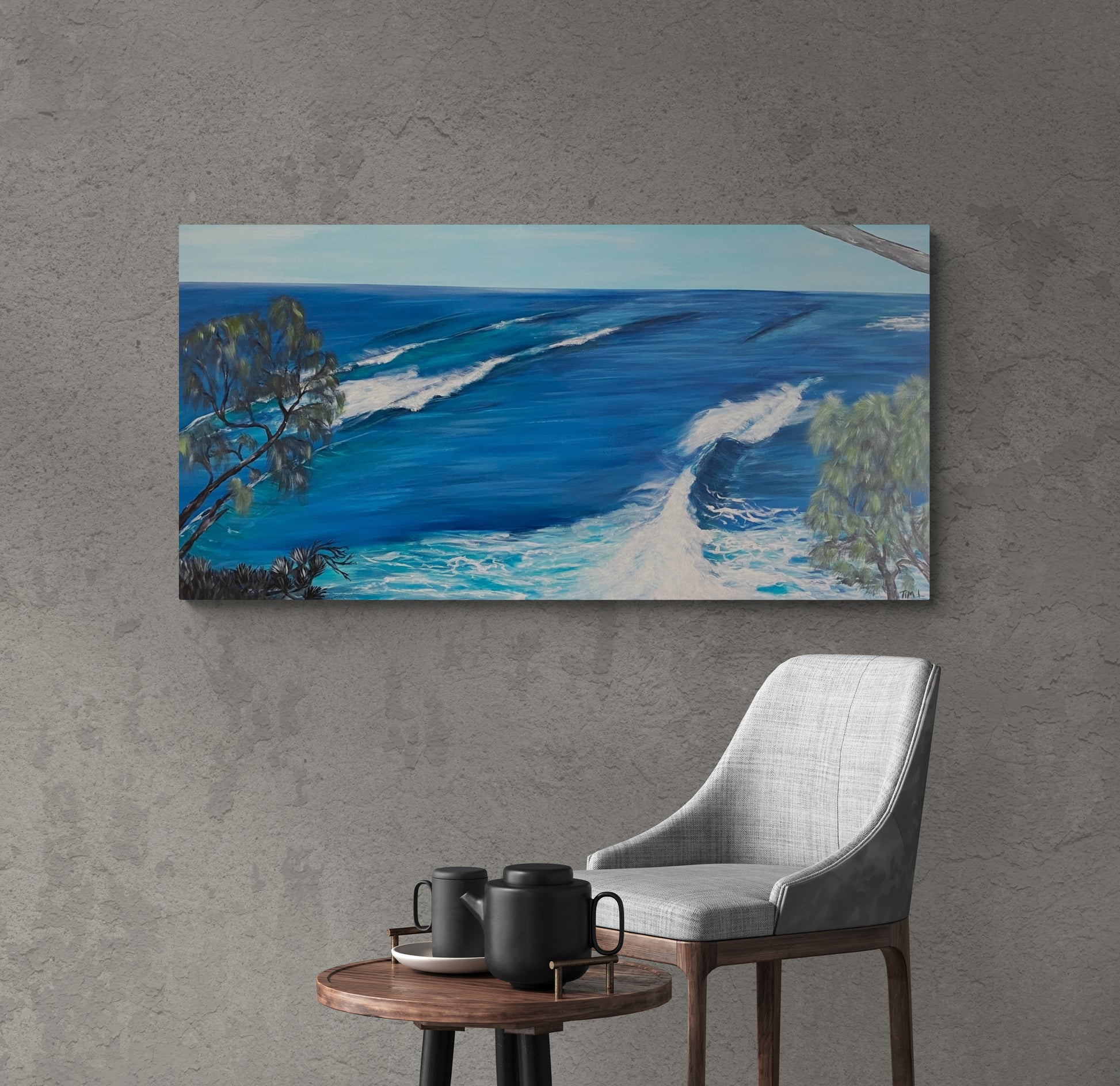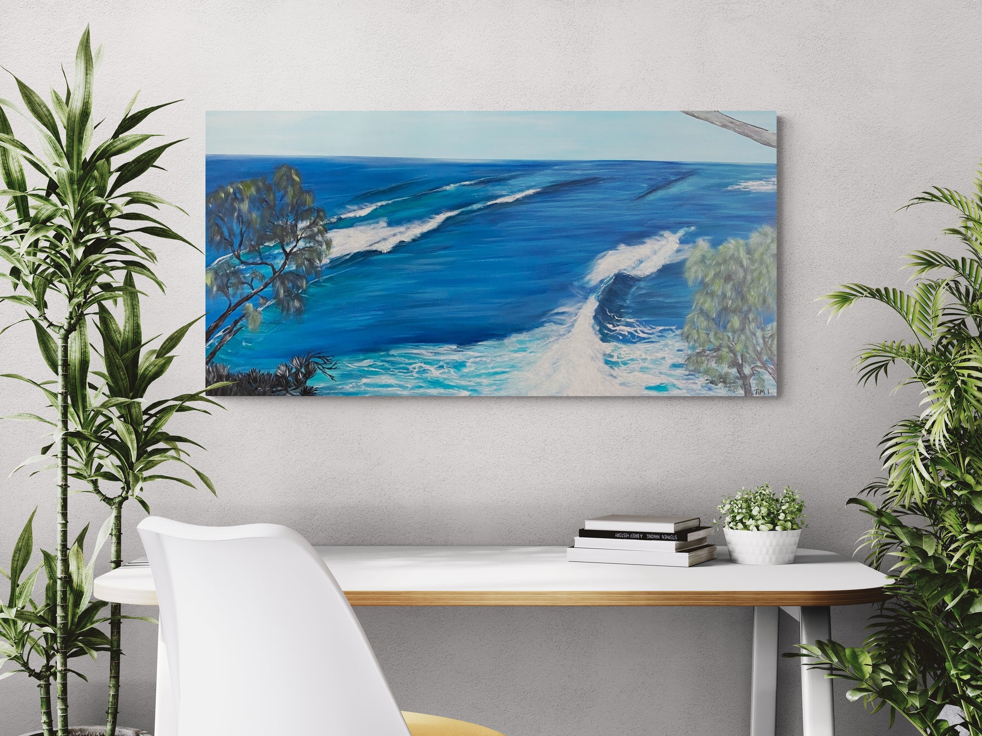 Acryclic on stretched canvas over timber frame. Ready to hang.